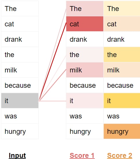 word, store and use similarity scores between words in a mechanism called “attention,” and encode
