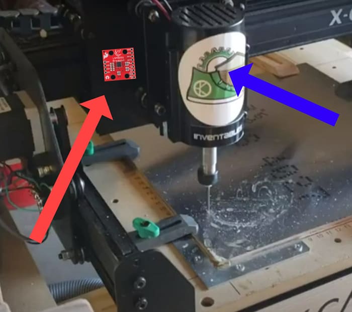 breakout board which will detect the X, Y, and Z motion induced into the frame of the CNC milling machine as the