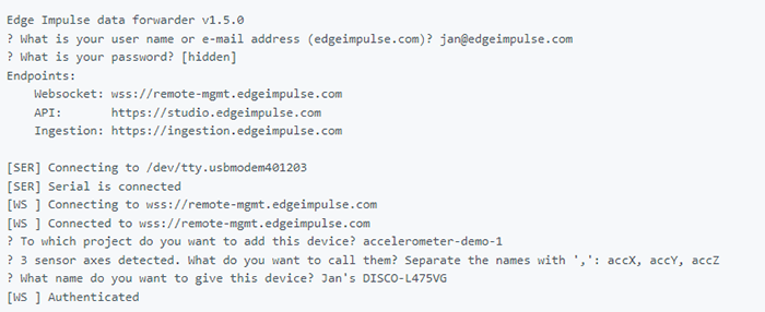 Figure 12: Debug data via the Portenta's serial port. Source: Green Shoe