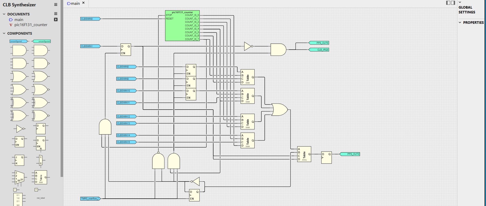 The CLB also supports dynamic configuration for on-the-fly changes and tri-state logic. Each BLE can connect internally to other BLE blocks, registers, and counters, as well as to external peripherals, I/Os, oscillators, and even other CIPs. Moreover, each BLE has a 4-input lookup table (LUT), combination logic, and a flip-flop. The graphical user interface (GUI)-based CLB graphical synthesizer in Microchip Technology’s MPLAB® Code Configurator (MCC) can customize the BLE blocks, allowing designs to be built and synthesized without the need for coding.