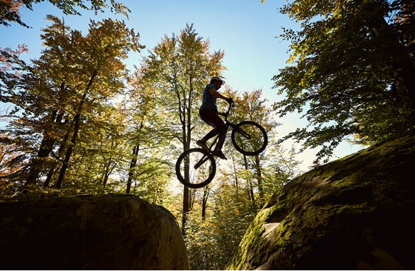 Figure 1: Cyclist jumping on a bicycle between two giant boulders. (Source: anatoliy_gleb - stock.adobe.com)