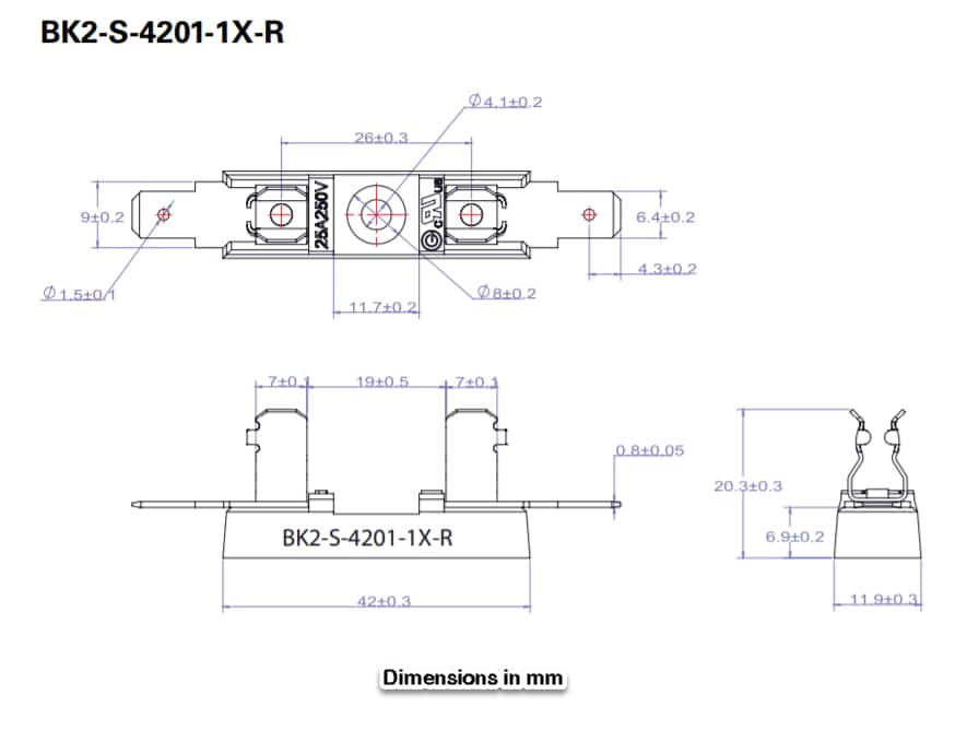 Eaton Electronics S-4000 Series Fuse Holders feature quick connect termination style and 1/4” x 1-1/4” fuse block. These fuse holders come with panel style mounting, 1 pole, and available in black color. The S-4000 fuse holders offer a 25A current rating and a 250VAC voltage rating.Features