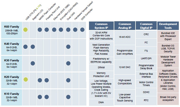 Kinetis Capabilities by Family